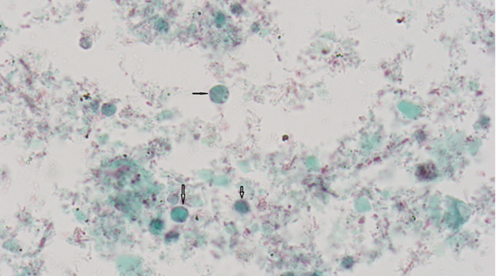 Trophozoites &/or cysts in fixed smears