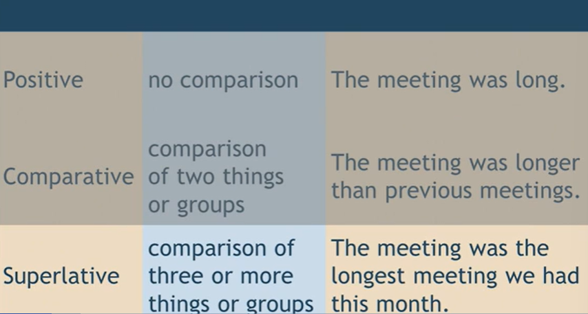 (positive: blue, sleepy) (comparative: bluer, sleepier) (superlative: bluest, sleepiest)