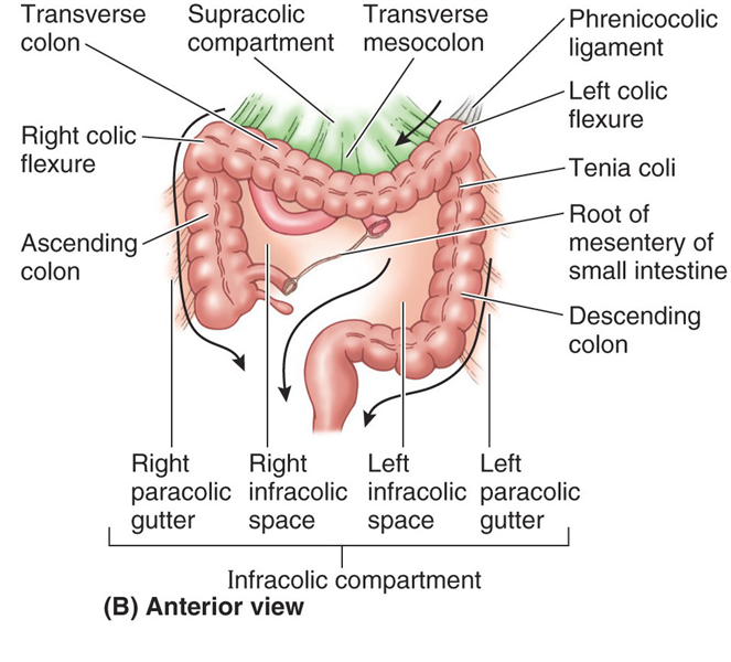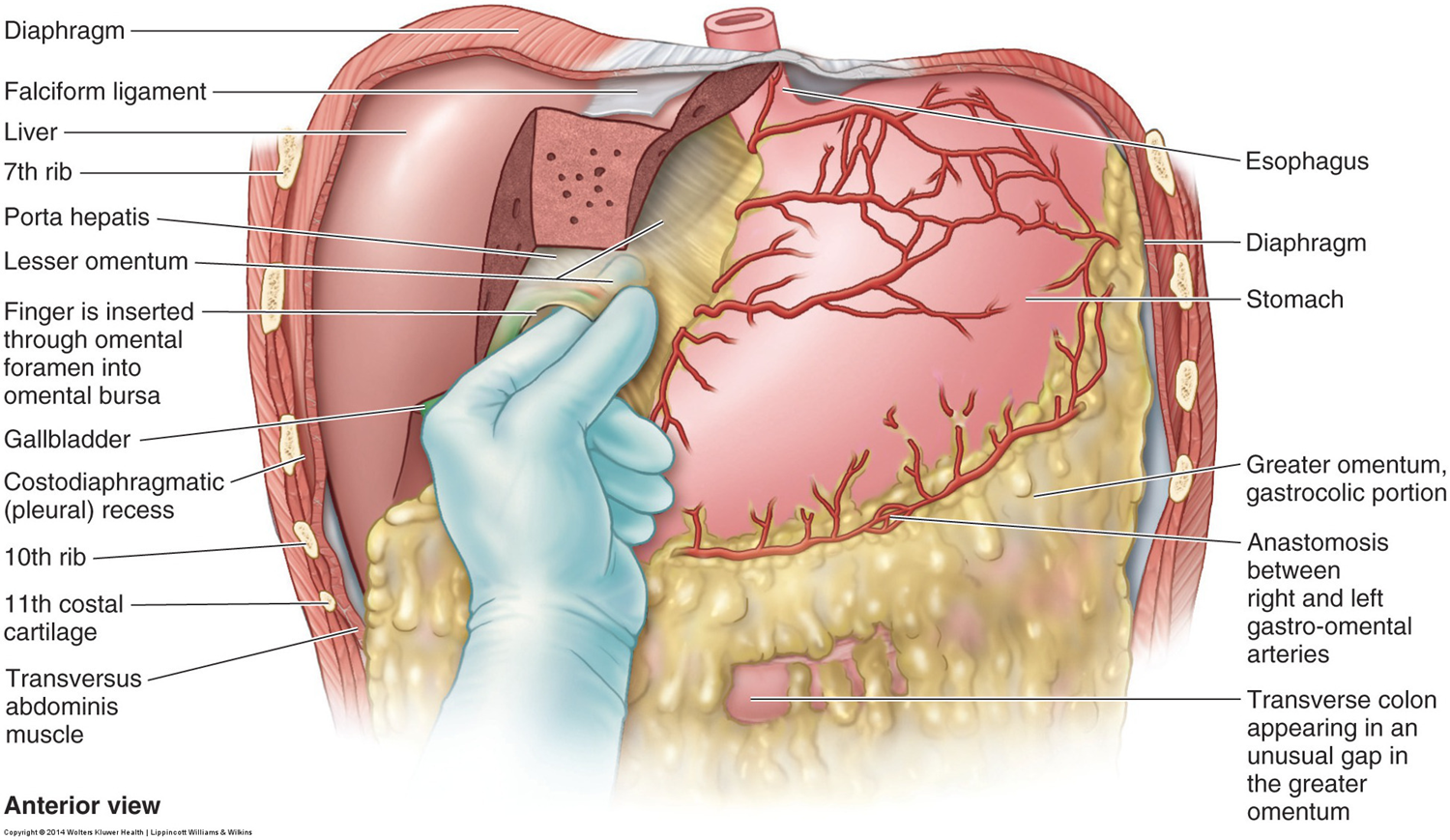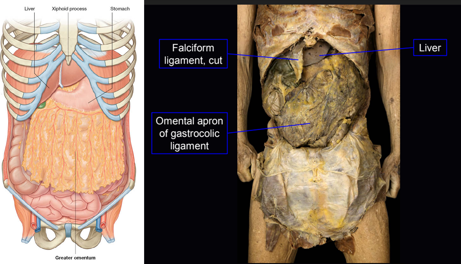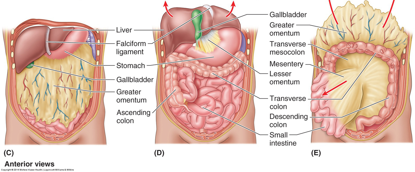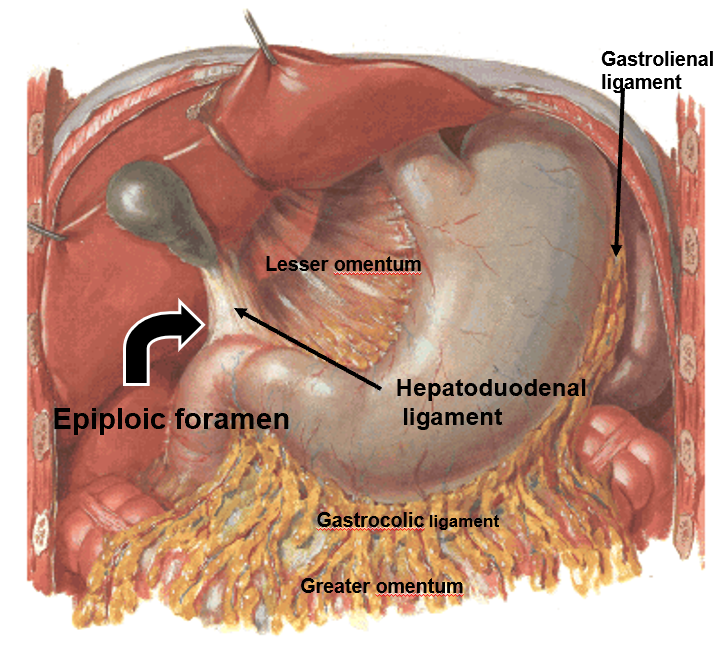 Gastrocolic ligament – portion of greater omentum attaching the greater curvature of the stomach to the transverse colon