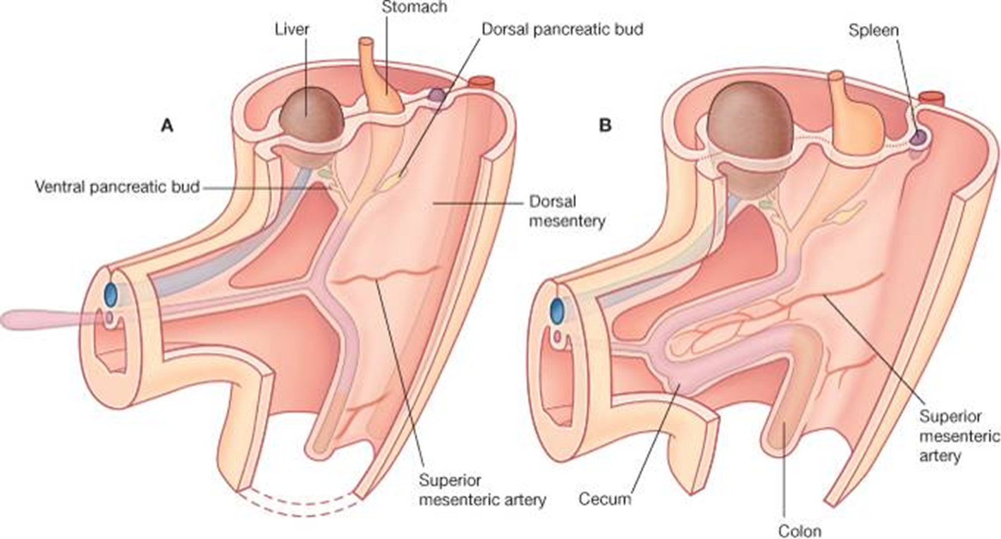 Dorsal mesentery: Extends from lower end of esophagus to the cloacal region of the hindgut