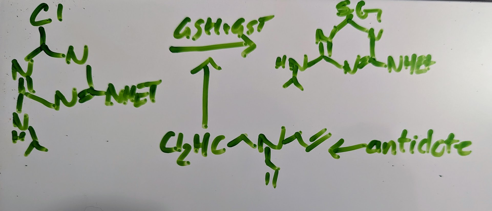 GSH and herbicide atrozin with antidote makes safer for humans as it induces GSH and glutathione transferase expression allowing it to be more selective