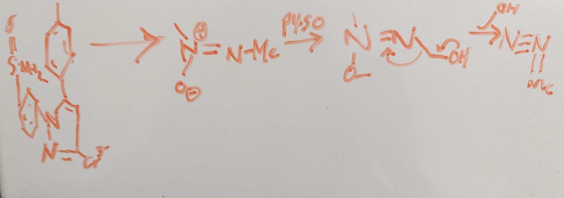 primary amine →R-C-NH2→RCNOH→RCNO→RCNO2