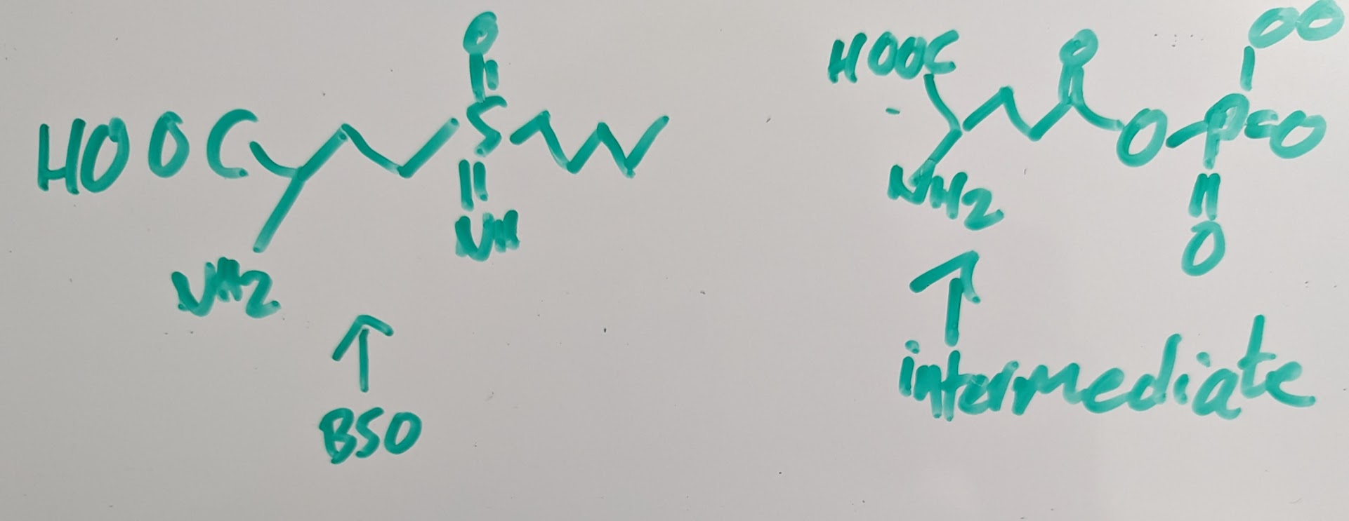 was thought that B50 inhibiting GSH depiction could be used against cancer cause normal GSH causes ROS metabolism and energy is no necessary so the cell can survive but cancer cell have a lot of ROS so they won’t survive