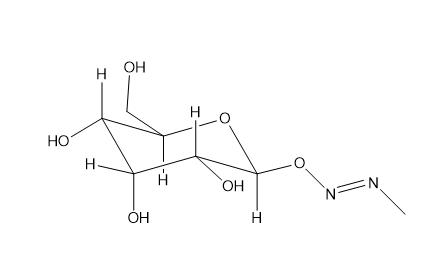 which turns into glucose + methylazoxymethanol→ N=-N-CH3 which is toxic when metabolized in the GI tract