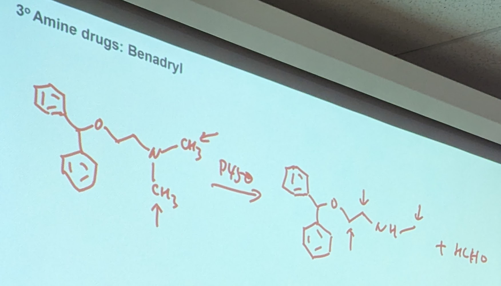 amantadine is hard to metabolize cause it’s a primary amine which isn’t easily oxidized
