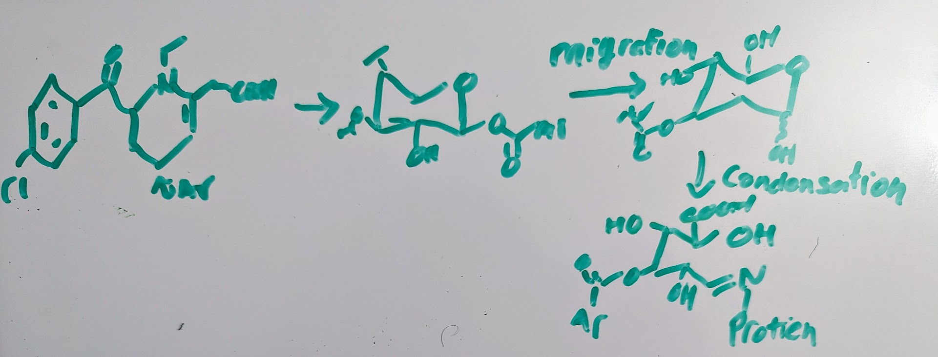 Toxicology for meds→ stay away from good electrophiles (ie acid chloride) cause it will most likely react with water other things are avoided like aziridine and epoxy compounds cause they’re reactive also include things like nitro groups and aromatic nitrogen