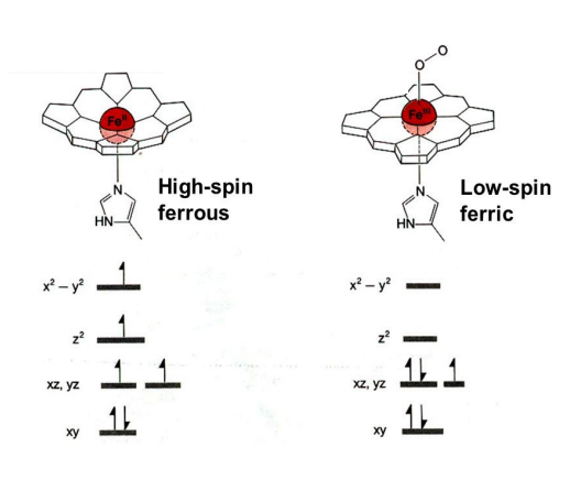 when spin state is higher it’s easier to reduce and binding will reduce the heme