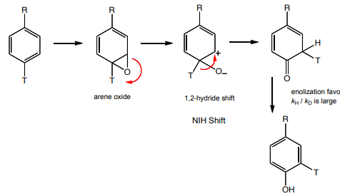 aromatic hydroxylation produces arene which are impossible to isolate cause they so reactive as follows: