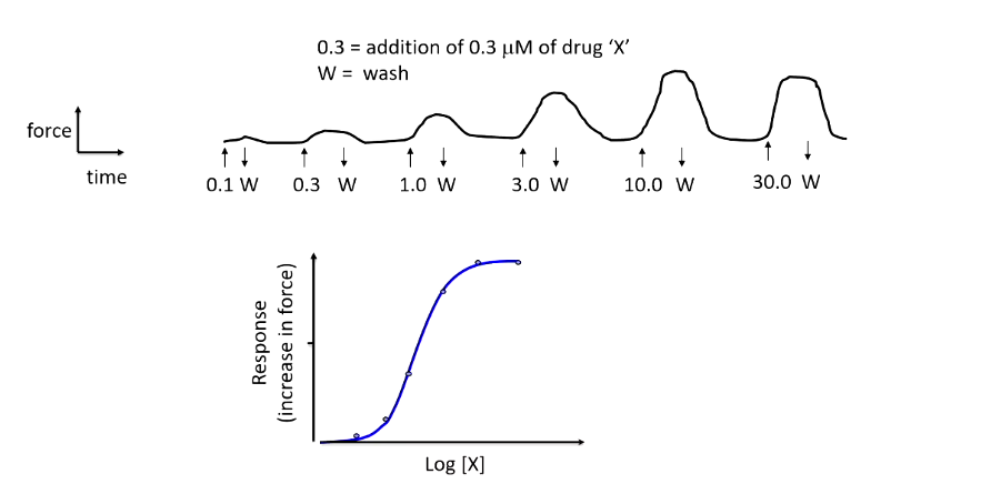 rate f contraction when the drug is added to the organ bath