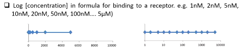 Linear scales compress low drug concentrations, making it difficult to distinguish effects at nanomolar level.