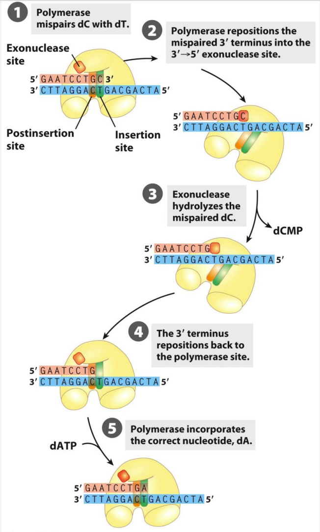 3’→5’ exonuclease activity has a ‘proof-reading’ function – removing misincorporated nucleotides