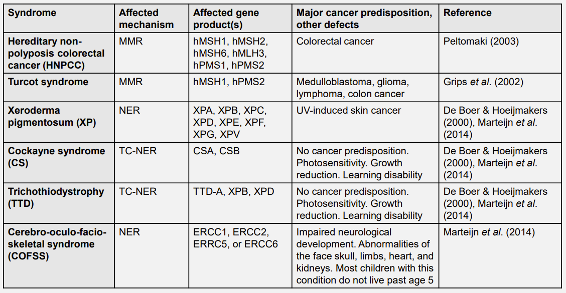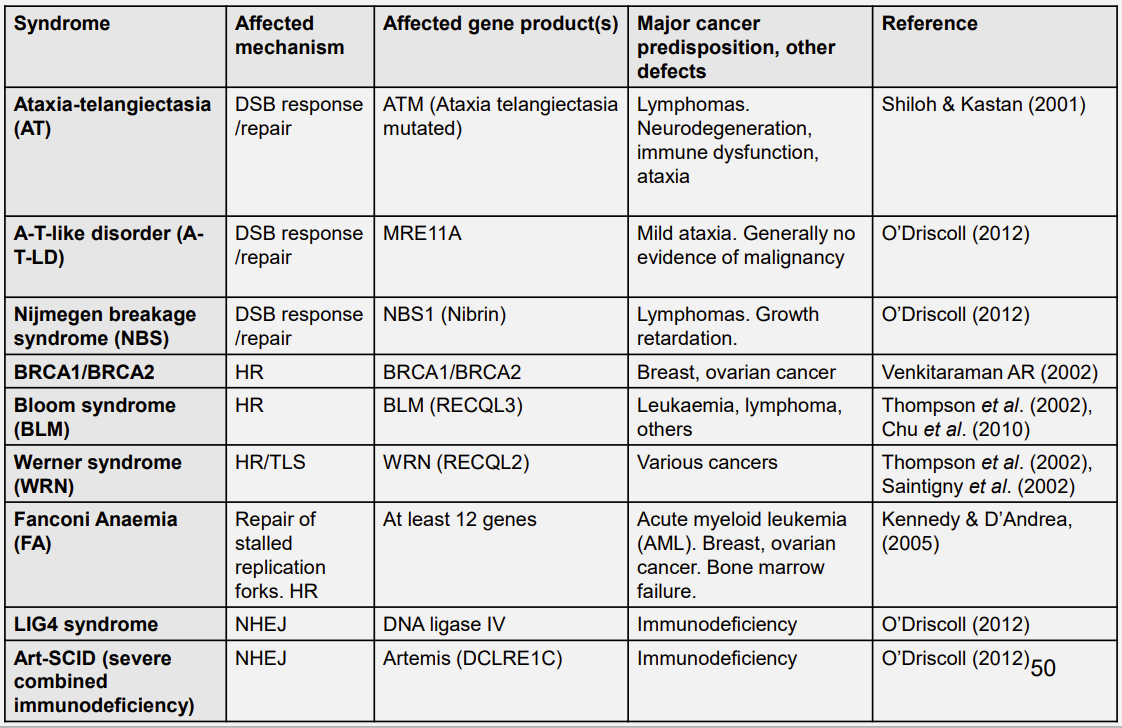 Partial loss of function of some proteins leads to predisposition to cancer in humans, e.g. ATM, BRCA1, BRCA2, NBS1 and LigIV/XRCC4.