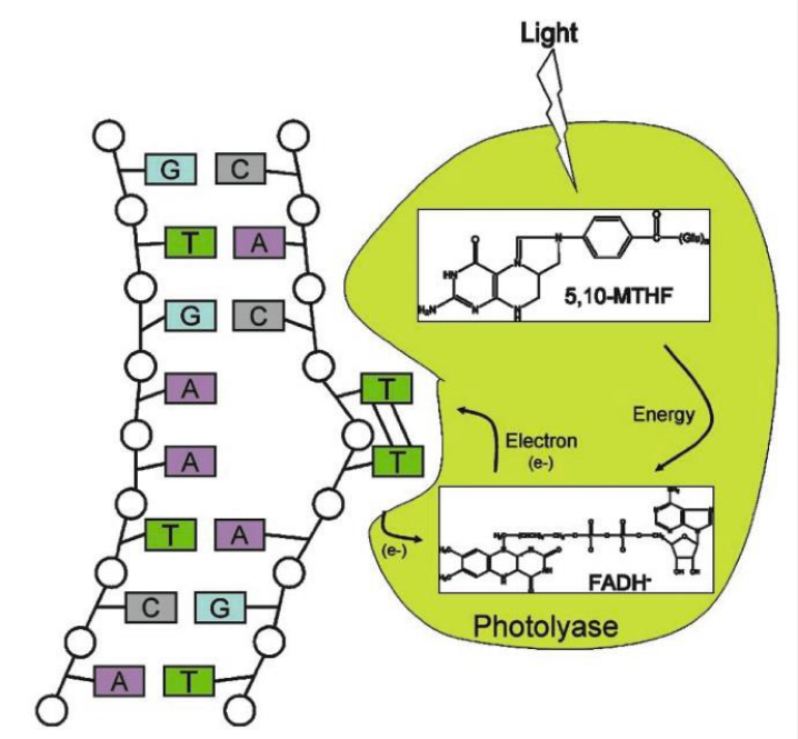Photolyases are found in many prokaryotes and eukaryotes but not in placental mammals.