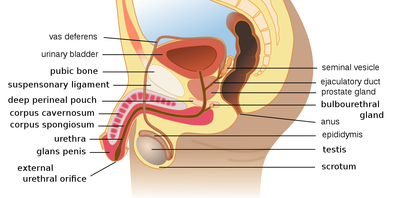 Sperm pass though the prostatic duct to the urethra. The sections of the urethra include the prostatic, membranous, and penile urethras.