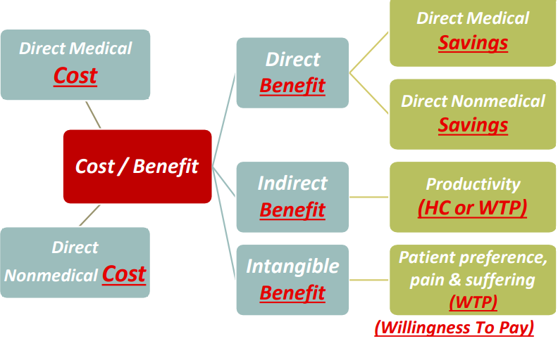 How much people are willing to pay to reduce the chance of an adverse health care outcome. This method incorporates patient preference and intangible outcomes.