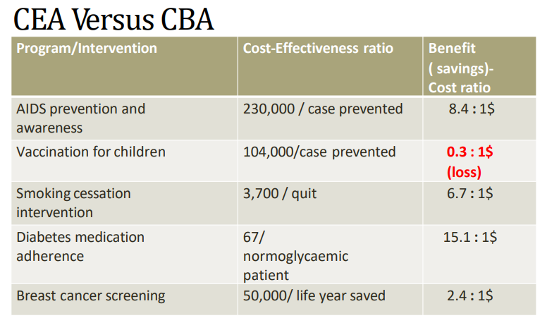 Started in 1960 to assess polio vaccine cost benefit to children. The benefit of the program was weighed against the loss of productivity & reduced survival (monetized by wages). Those benefits were changed to monetary terms in Pharmacoeconomics.