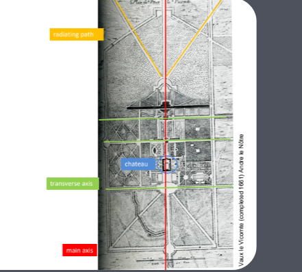 Focus on creating a sense of absolute, organized spaces to express the French monarchy's physical but also the ideological power and grandeur.