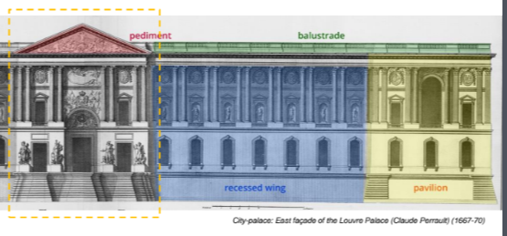 The East façade of the Louvre is a prominent example: