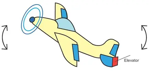 pitch is rotation about the latitude (horizontal) axis to pitch the plane up or down. it’s controlled by turning control column up (to pitch up) and down (to pitch down), which then lifts or lowers the elevators on the horizontal stabilisers. the elevators move together, unlike the ailerons which move in opposite directions to each other. elevators work by varying the amount of lift created at the tailplane, dictating whether the tailplane is higher or lower than the nose, and therefore whether the aircraft goes up or down.