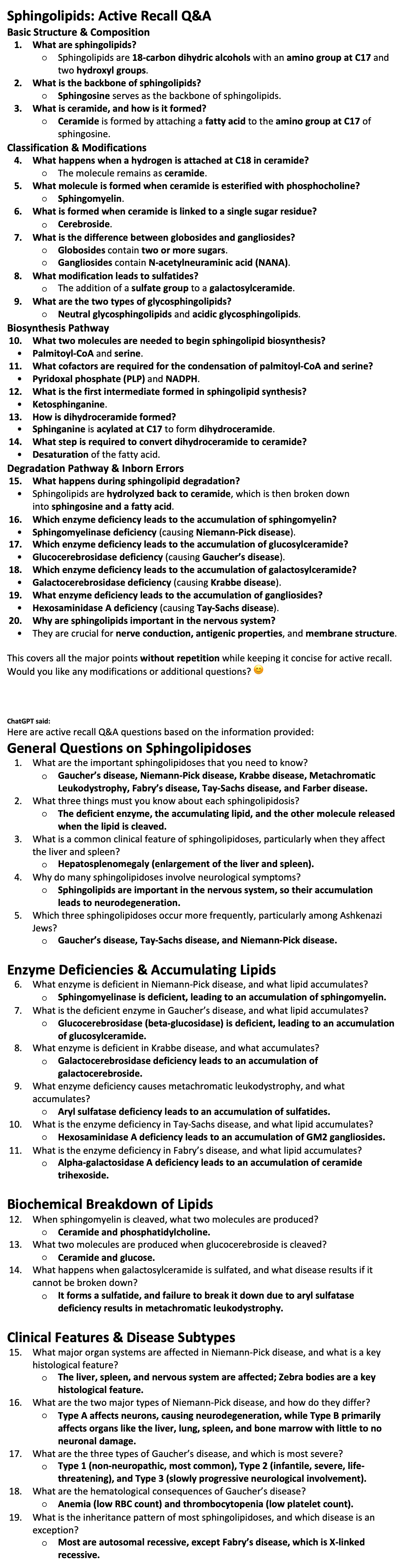 Sphingolipids: Active Recall Q&A