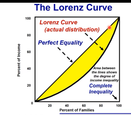 Gini Ratio= Area Between Lorenz Curve and Diagonal / Total area below the diagonal