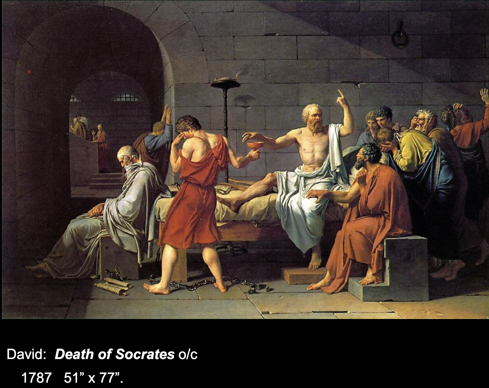 Socrates drinks hemlock after questioning greek gods