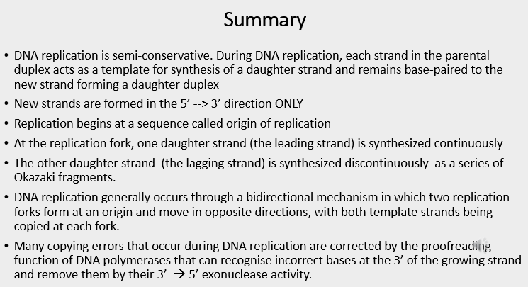 Leading strand- newly synthesised strand that is synthesised in a continuous manner from DNA polymerase in 5’ to 3’