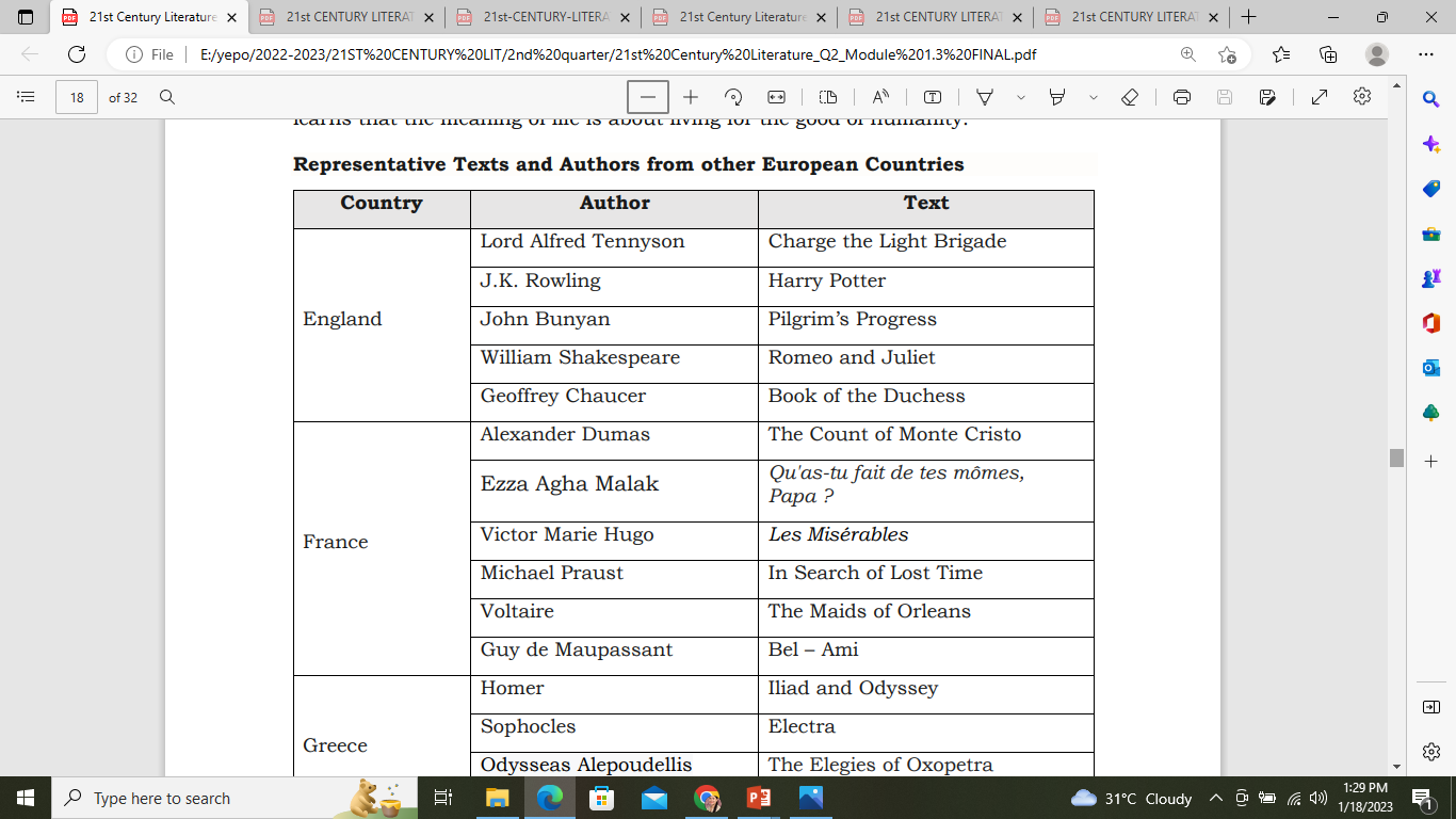 The literary prominence of Europe is perceptibly known by its notable authors and their significant works. Here in this module, together we will venture towards learning their prolific literary fame.