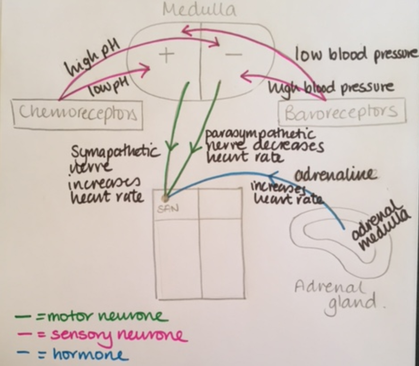more impulse are sent from the cardiovascular centre to the SAN along the sympathetic nerve