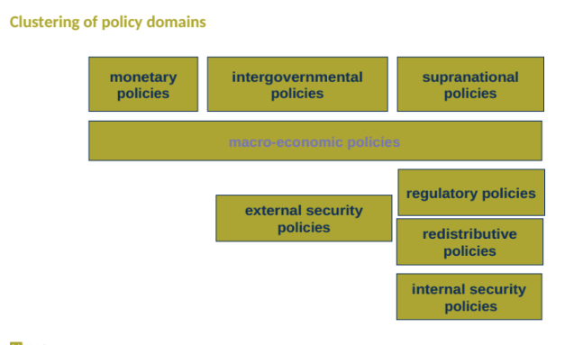 -Notable institutional shifts: a more intergovernmental EU scenario with a prominent role for the ECB against declining involvement from the European Parliament and Commission, leading to a new economic governance framework following the sovereign debt crises.