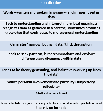 Qualitative: Utilizes words, ideas, perceptions, concepts.