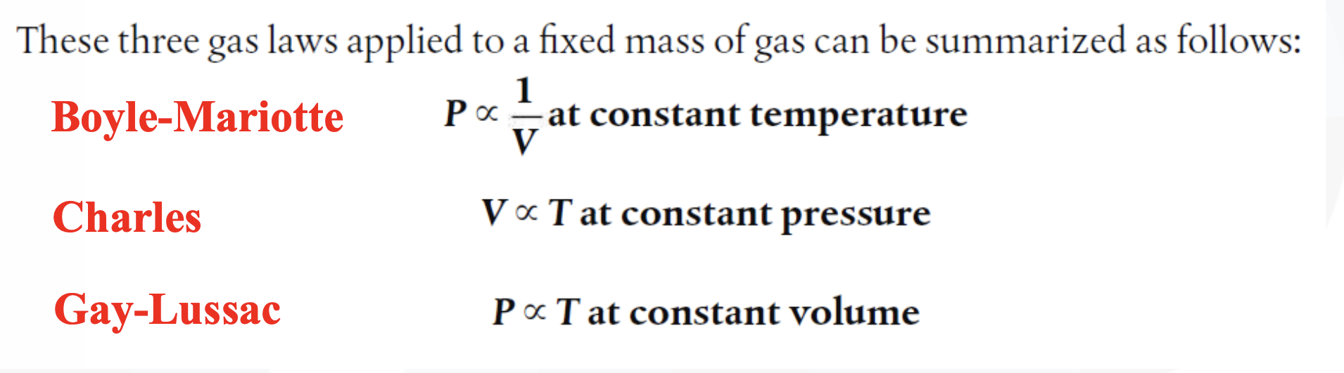"For a fixed mass of gas, at a constant temperature, the product (pressure x volume) is a constant."