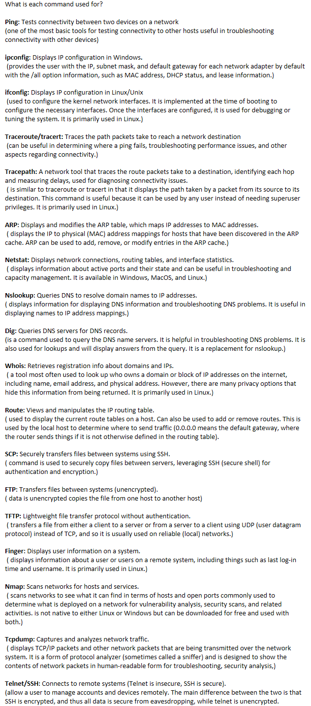 Telnet/SSH: Connects to remote systems (Telnet is insecure, SSH is secure).