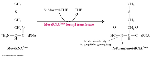 - tRNAmet and tRNAfmet contain the triplet 3’-UAC-5’