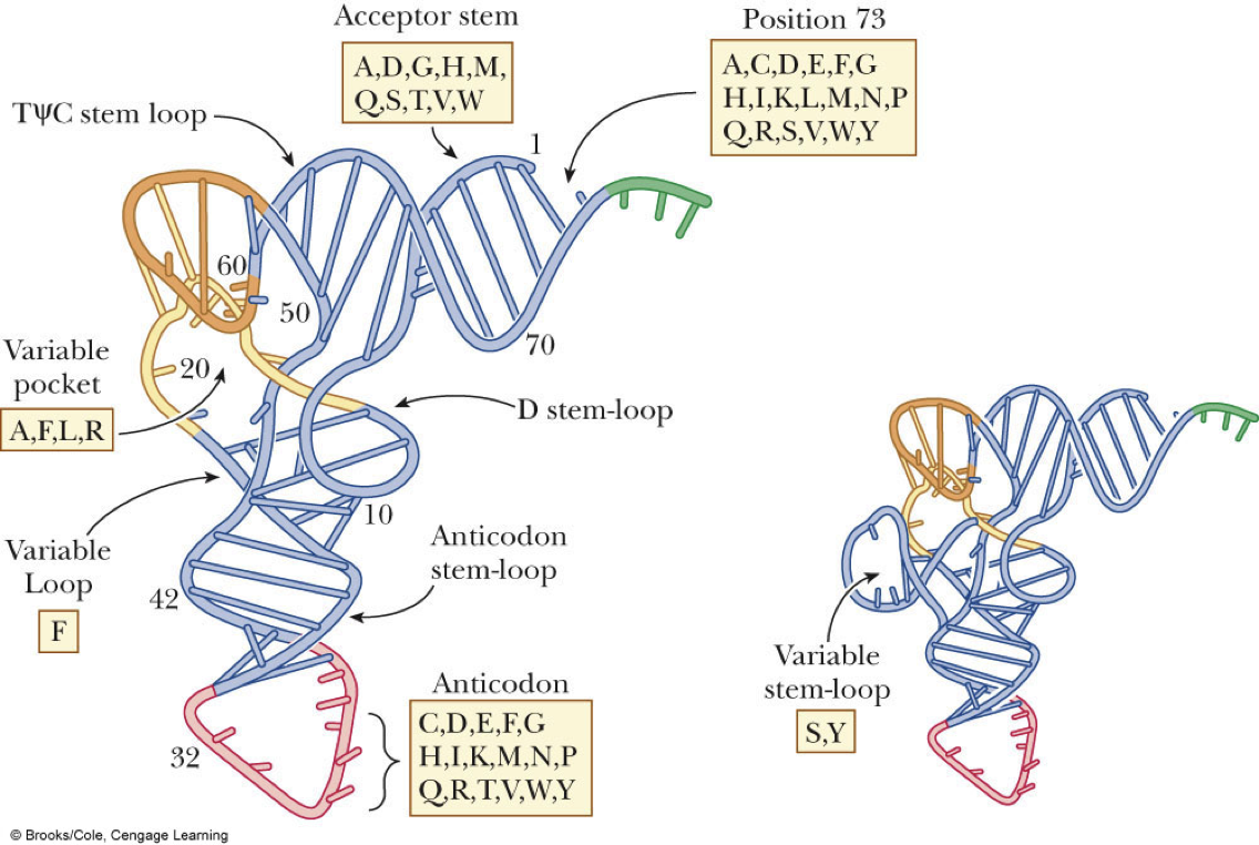 - There are several recognition sites for various amino acids on the tRNA