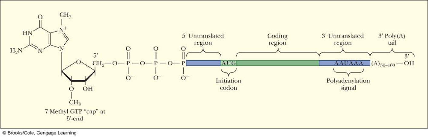 - Start signal is preceded by a Shine-Dalgarno purine-rich leader segment, 5’-GGAGGU-3’, which usually lies about 10 nucleotides upstream of the AUG start signal and acts as a ribosomal binding site