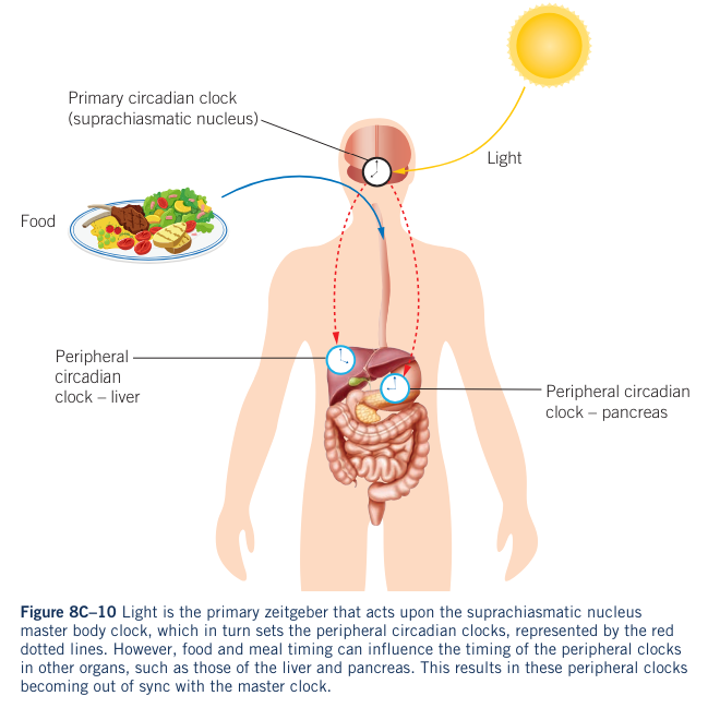 - For optimal energy balance, peripheral clocks should be synchronised with the suprachiasmatic nucleus.