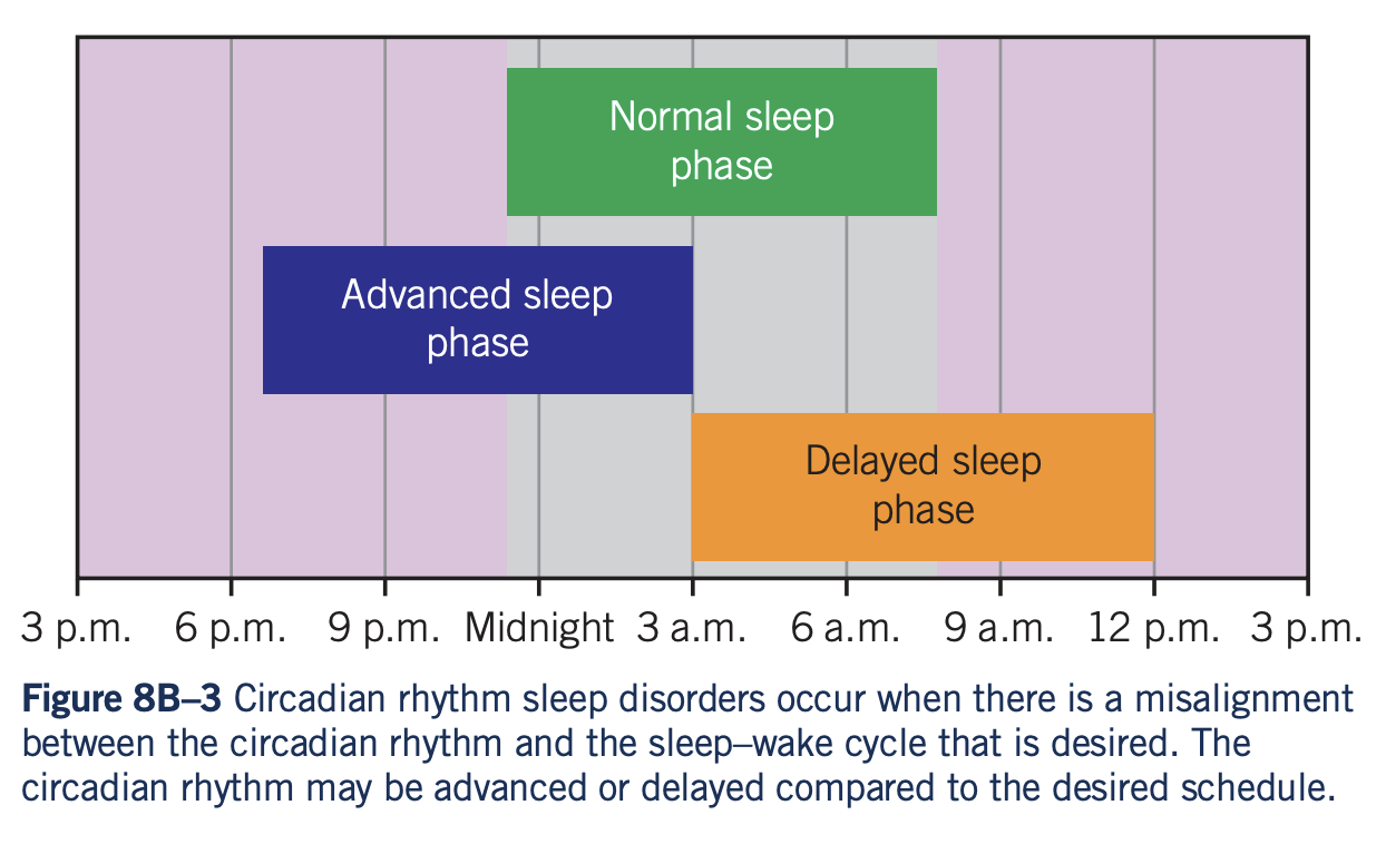 - Attempts to adhere to a more reasonable, later bedtime result in an early wake time due to the shift in circadian rhythm.