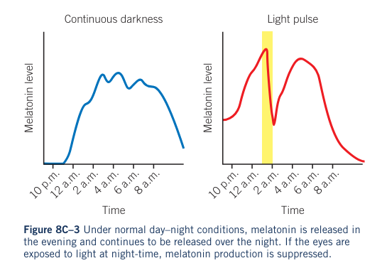 - Increased light levels suppress melatonin production, promoting wakefulness.