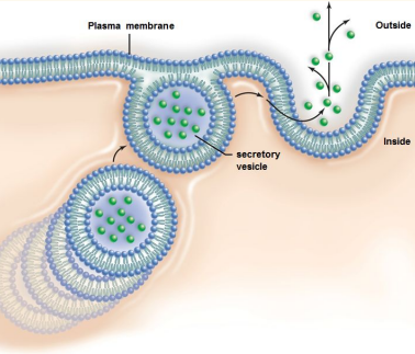 Exocytosis: Intracellular vesicle often made by the golgi goes and fuses with the plasma membrane and the contents of the vesicle is excreted out.