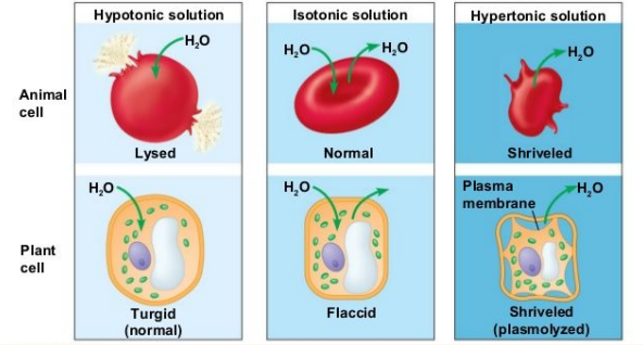 Hypotonic Solutions: Lower amount of solute outside the cell (lower inside)