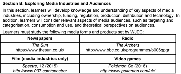 This section will assess knowledge and understanding of media industries and audiences in relation to any of the four forms studied in this section: video games, radio, newspapers and tv.