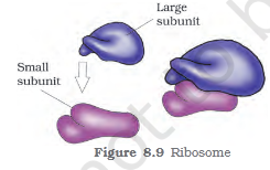 Ribosomes are the granular structures first observed under the electron microscope as dense particles by George Palade (1953). They are composed of ribonucleic acid (RNA) and proteins and \n are not surrounded by any membrane. \n The eukaryotic ribosomes are 80S while the prokaryotic ribosomes are 70S. Each ribosome has two \n subunits, larger and smaller subunits (Fig 8.9). The two subunits of 80S ribosomes are 60S and 40S while that of 70S ribosomes are 50S and 30S. Here ‘S’ (Svedberg’s Unit) stands for the sedimentation coefficient; it is indirectly a measure of density and size. Both 70S and 80S ribosomes are composed of two subunits.