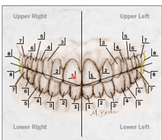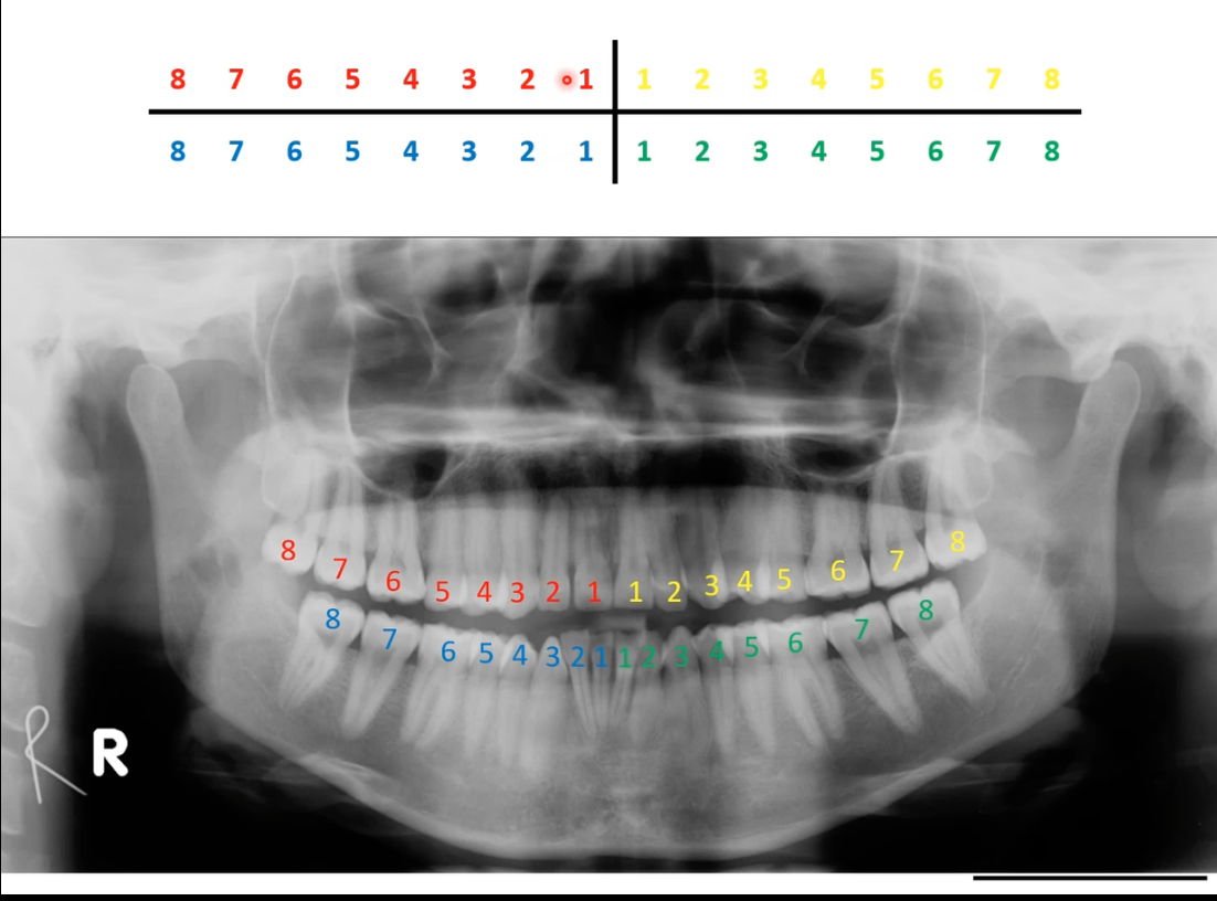 for mandibular teeth, apex/ root points upwards and crown points downwards- mandibular teeth are opposite rotation