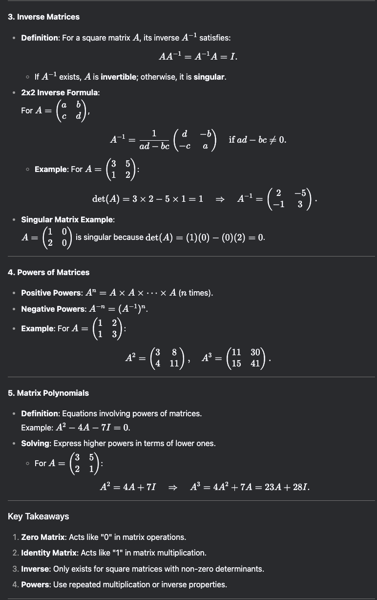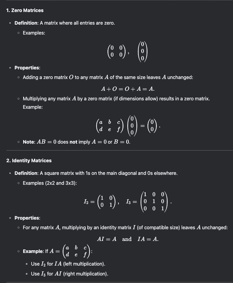 MATH1031 LEC 4: Inverse Identity and Zero Matrices.