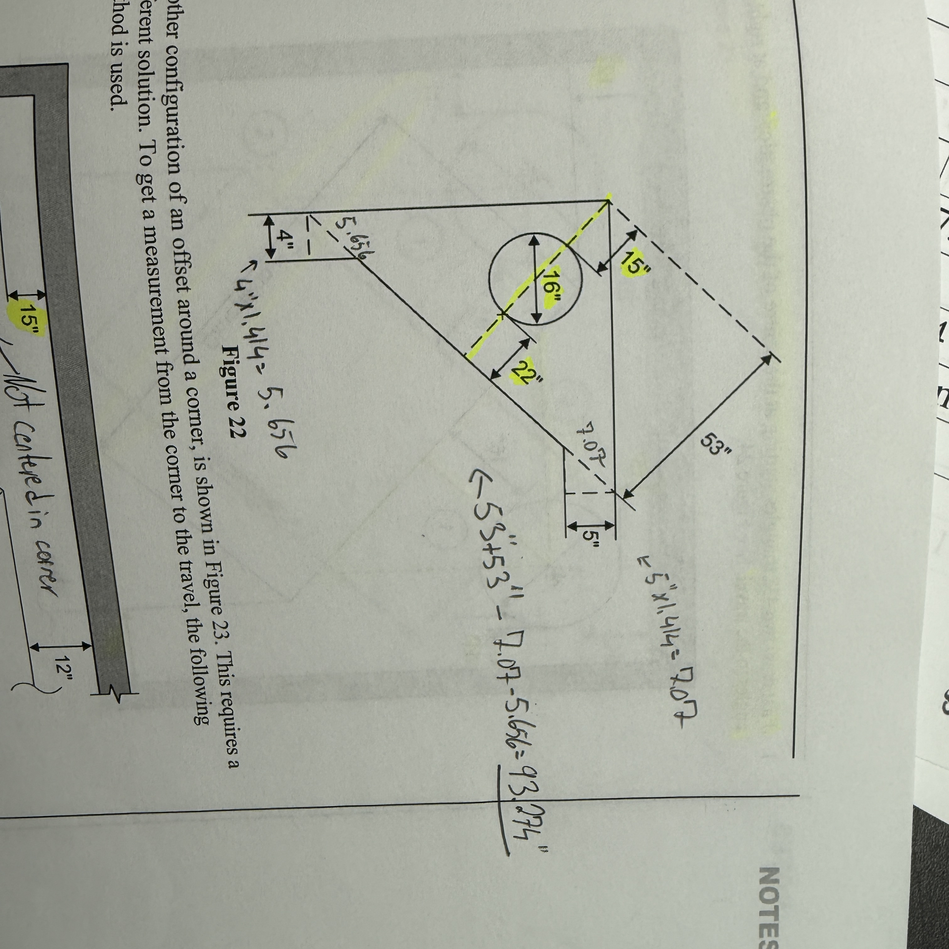 Obj 1 and 2 offsets for right angle triangle , use formulas for 45 and 90 degree angles