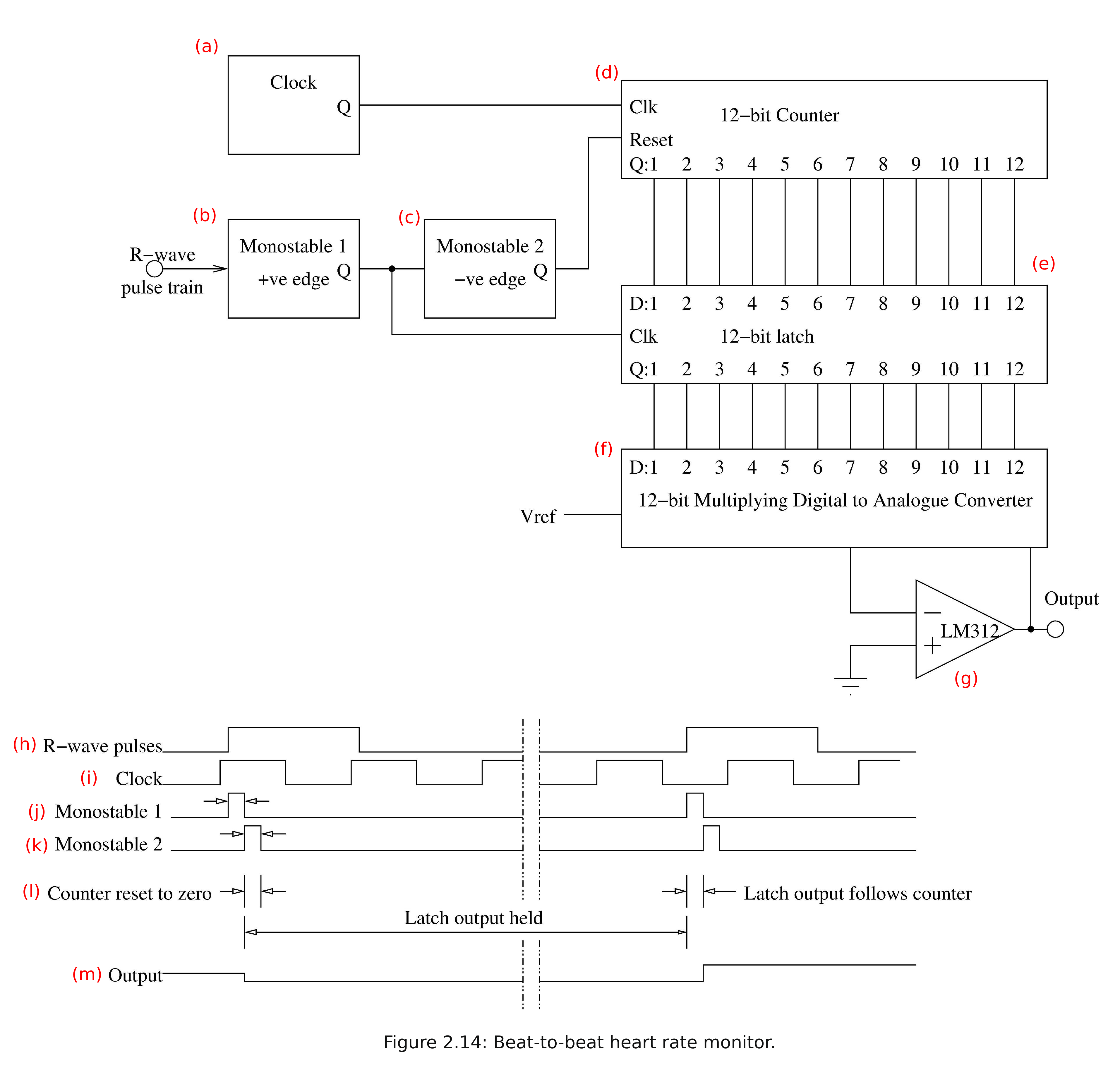 (b) | Monostable 1 (triggered by positive edge of R‑wave) | Generates a short “LOAD‑latch” pulse |