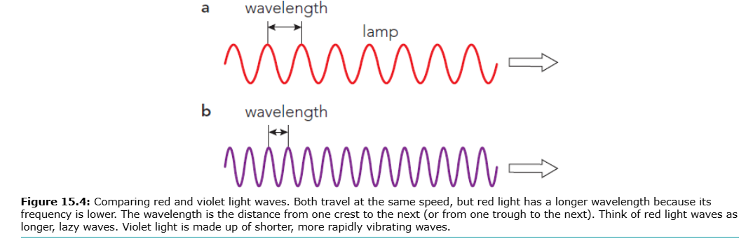 Red light: longer wavelength, lower frequency β "lazy waves"