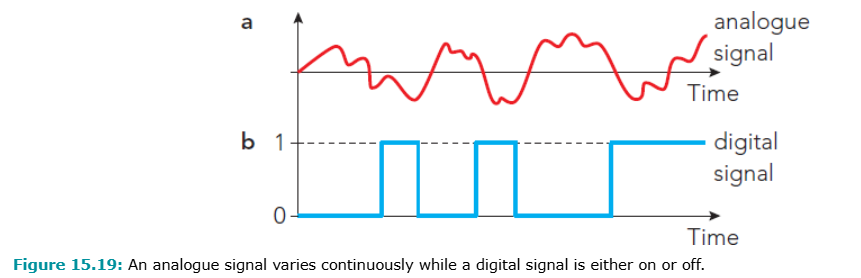 Digital: pulses (on/off), clearer, faster, compatible with computers
