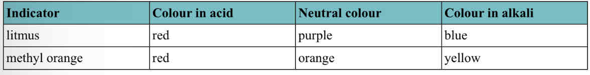 Indicators: substances that change color if they are put into an acid or alkaline solution.